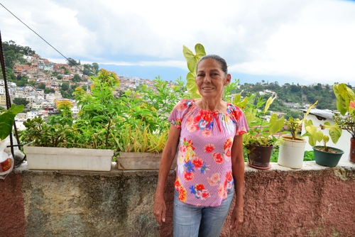 La casa de María tiene una espaciosa terraza con una hermosa vista panorámica de Caracas. Siempre le gustó sembrar, pero cuenta, que fue a través de un viaje que hizo a Guacara donde luego de compartir con otras personas del pueblo, adquirió el conocimiento y la sensibilidad que tiene ahora por las plantas y cómo cuidarlas. Los primeros árboles que sembró fueron de aguacate y cambur. Ahora tiene caraota negra, yuca, maíz, ocumo, lechosa, auyama y una enredadera de quinchoncho que se la regaló su vecino, William Díaz. A María le gusta fertilizar sus plantas con desechos orgánicos que ella misma acumula. También es amante de los animales, rescató una perra abandonada por unos vecinos que se fueron del país y tiene varios morrocoyes.